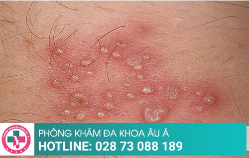 Mụn nước vỡ ra có dịch mày vàng chảy ra, kèm theo đó là cảm giác như bị phỏng lửa.