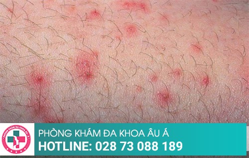 Một thời gian sau, tại vị trí các nang lông những vết đỏ sẽ chuyển thành những mụn nước, đầu mưng mủ trắng, chạm vào có cảm giác đau rát.